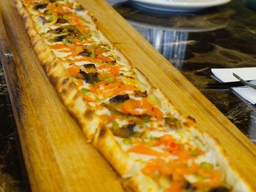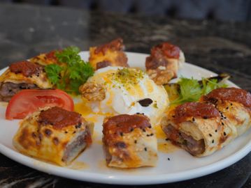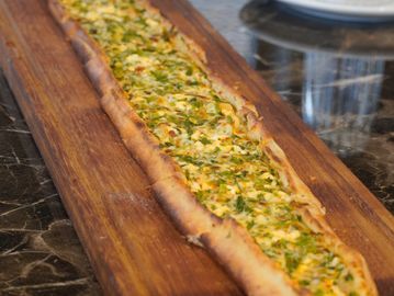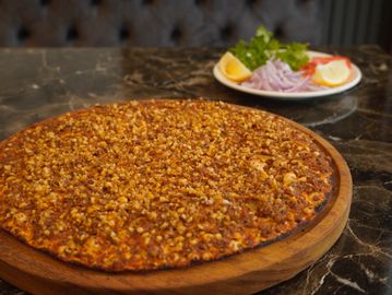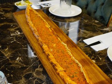 Minced beef blended with tomatoes, red bell peppers, onions, and garlic, oven-baked in a traditional Turkish skillet. This dish originates from Kilis and is known for its rich, savory flavor and slight kick from the garlic and pepper blend.