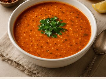 Red lentils simmered with onions, garlic, and Turkish spices – smooth, hearty, and finished with a touch of chili for a bold kick.