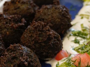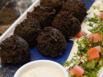 Crispy golden-brown chickpea fritters blended with fresh herbs, garlic, onion, and Middle Eastern spices. Served hot with a side of tahini or yogurt sauce for dipping.