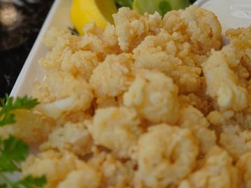 Classic Mediterranean-style fried calamari, served with tarama sauce, mixed greens, and fresh lemon.