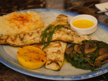 Tender Mediterranean seabass, grilled to perfection. Finished with fresh dill, lemon, and a drizzle of olive oil.