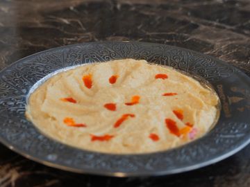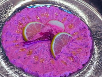 Roasted beets blended with labneh, yogurt, garlic, and olive oil.