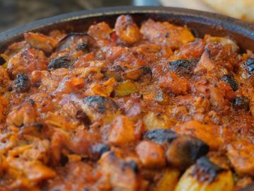 Tender lamb slow cooked with onions, garlic, bell peppers, mushrooms and fresh tomatoes