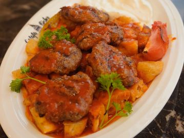 Tender Lamb liver, lightly pan-fried in butter and oil. Served with sumac onions, fresh tomato, parsley, and lemon.